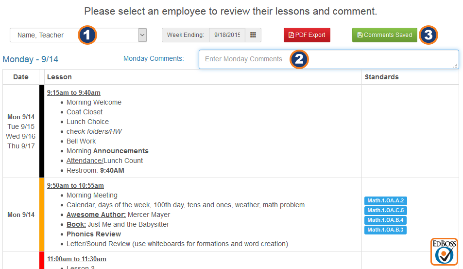 - Link to and review any teacher's schedule or lesson plans to provide feedback or support. In case of unexpected teacher absence, your access to existing lesson plans is immediate.