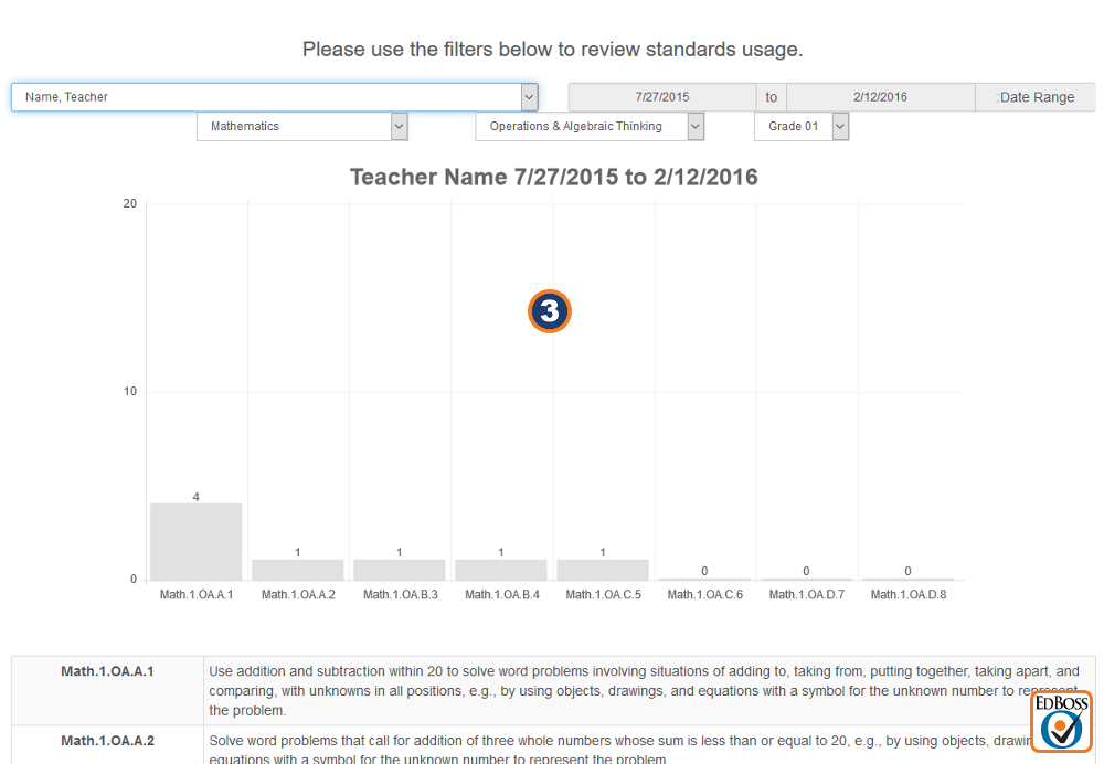 1. Chart your Common Core Standards usage. Charts can be saved to image files for use in reports and presentations.