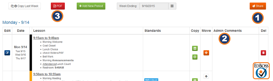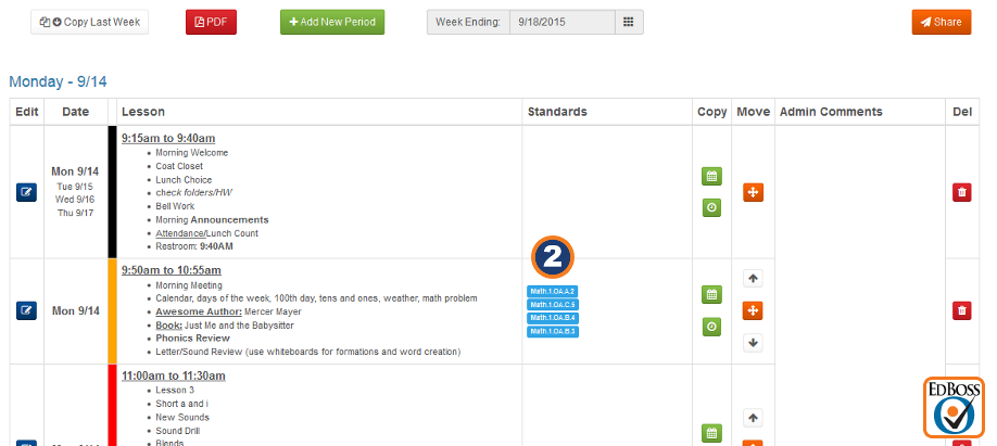 4. Copy or move a class period or lesson plan.