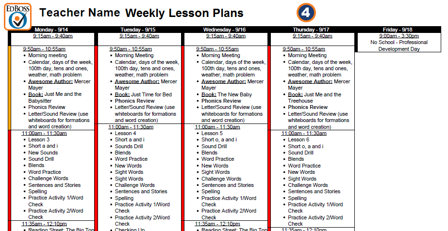 Lesson Plan Schedules