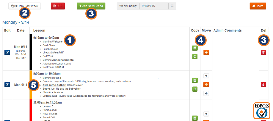 4. Copy or move a class period or lesson plan.